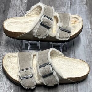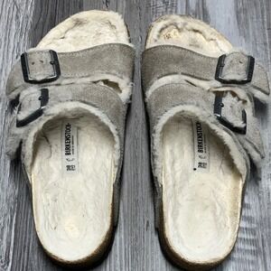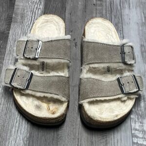 Birkenstock Arizona Shearling Lined Suede Sandals Taupe EU 38 US 7.5-8