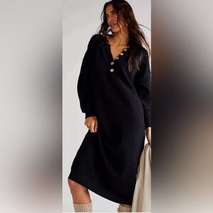Free People Hailee knit Black Button-Up Sweater Dress Medium