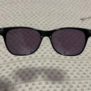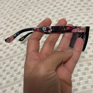 Fun black sunglasses featuring purple lenses and floral ear pieces. They are used but still in great condition. No case but will make sure to wrap well.