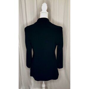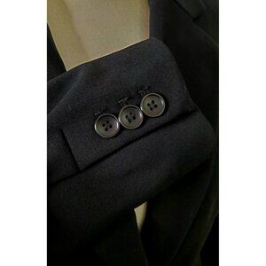 The Boston Proper 1 Button Blazer Jacket in size 6 is a classic and career-oriented piece designed for women. Made from a blend of nylon and spandex, this slimming jacket features a button closure, lined interior, and shoulder pads for a polished look. Suitable for various occasions from casual to formal, the black blazer is perfect for the winter, fall, and spring seasons. With its sleek and minimalist design, this Boston Proper blazer is a versatile and stylish addition to any woman's wardrobe, ideal for workwear or a party outfit.