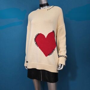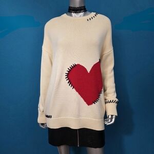 🆕️❤️ ANTHROPOLOGIE MAEVE Crew-Neck Whipstitch Heart Icon Sweater // (NWT)