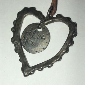 Elegant silver heart pendant necklace with a brown leather cord. Perfect for adding a touch of sophistication to any outfit.