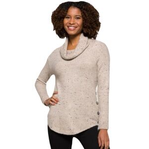 EUC! Cozy oatmeal Beige Cowl Neck Sweater with side buttons Size Large