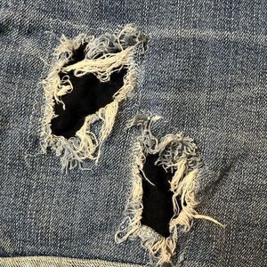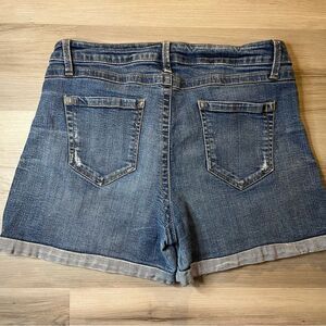 Brand: 21 Denim Sz 31. The holes in the shorts are made with cloth behind them, shown in photos. Trendy ripped jean shorts. Classic blue denim. Ideal for casual wear.