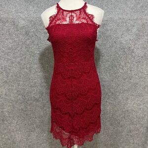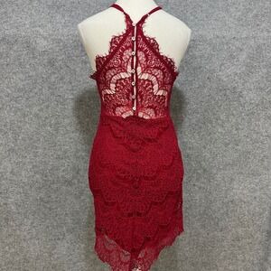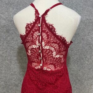Intimately Free People Lace Halter Dress Red Button Back Sheer Mini Size PS