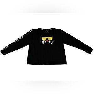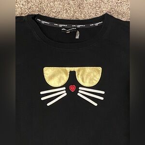 Karl Lagerfeld sweater, Karl Lagerfeld Paris top, designer pullover, cat graphic sweater, gold glasses cat, black crewneck sweater, women’s XL sweater, cotton blend sweatshirt, novelty graphic top, casual designer wear