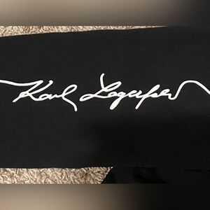 Chic and playful Karl Lagerfeld Paris pullover sweater in size XL. Features the iconic cat graphic with metallic gold sunglasses and whisker detail on the front, plus signature Karl Lagerfeld script on the sleeve. Made from a soft cotton-blend fabric for comfortable everyday wear. Classic crew neckline with long sleeves. Perfect statement piece for casual or designer-inspired outfits.