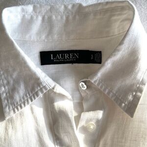 LAUREN Ralph Lauren White 100% Linen Quiet Luxury Old Money Resort Wear Size S