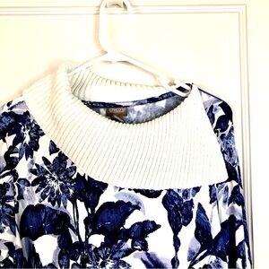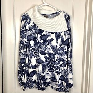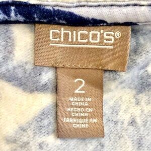 Chico’s blue white floral long sleeve tunic envelope neck size 12 (Chico’s 2)