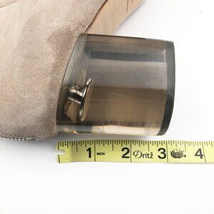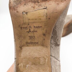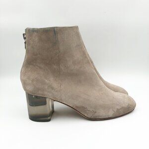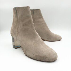 Rag & Bone Drea boot. Clear block heel, back of ankle zipper, tan leather suede outer, size womens 39.5 or US womens 9.5, scuffs/marks/stains on outer, discoloration around top-see photos. Smoke and pet free home.