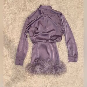 NWOT House of CB Tyra Orchid Satin Feather Shirt Dress Size XS
