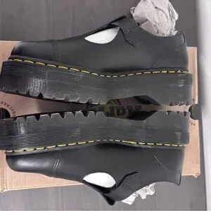 Dr. Martens Black Bethan Shoes with Yellow Stitching