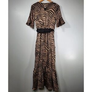 Foxiedox Assymetric Billie Zebra Print Ruffle Dress Tan Black Size Small