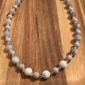 Handmade Necklace and Bracelet Set w/ Blue Lace Agate and Glass Beads