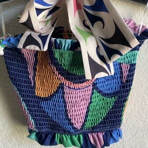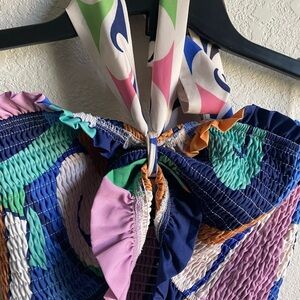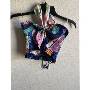 Her Bottari Emily Smocked Ruffle Bandeau Halter Tropical Coquette Y2K Top Size M