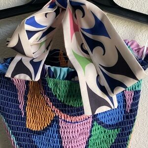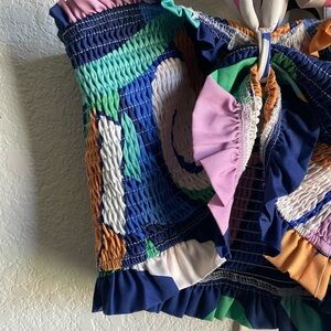 Smocked ruffle bandeau.