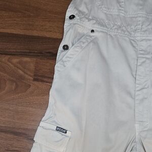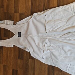 Truly unisex vintage cargo-style overalls. These are made of a thick, durable 100% heavy cotton with a "workwear" weight. Relaxed unisex cut with a functional zip fly and a long rise for comfort. Labeled as M (unisex) but see measurements below as they were worn oversized (more like a L for women)