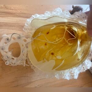 Lights not working but she sits upright on the table. The base holding the lights needs to be glued.