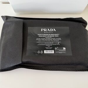 Elegant Prada toiletry bag with bold red accent. Ideal for travel essentials.