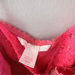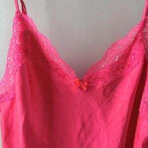 Y2K Victoria Secret spaghetti strap nightgown, red/pink, size medium, lace and rhinestones, measurements included. Excellent condition.