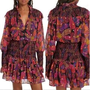 Farm Rio | NWT Heart Daisy Smocked Mini Dress Floral Long Sleeve | Sz XS