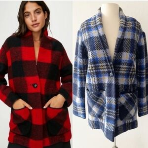 Aritzia Wilfred Free blue Yellow Wool Blend Plaid Casual Peacoat Jacket Size XS
