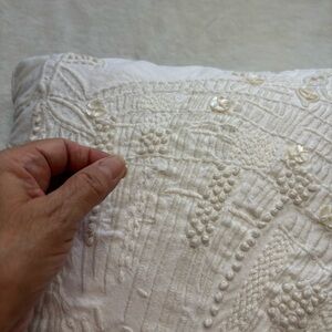 Pottery Barn Cream White Embroidered Shell Pattern Throw Pillows & Inserts Pair
