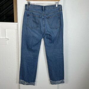 Chic slouchy blue jeans . Stylish and comfortable for everyday wear.