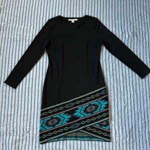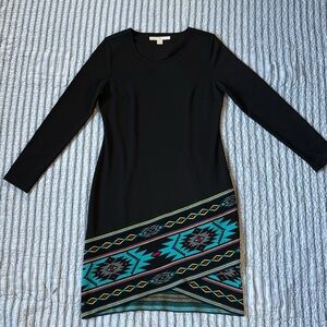 Boston Proper Sweater Knit Sheath Dress Long sleeve Aztec Tribal print size 4
