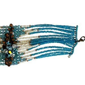 Title:Aqua Boho Wide Cuff Statement Bracelet Seed Beads Rhinestone Center Adjus