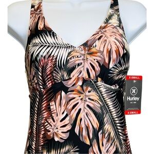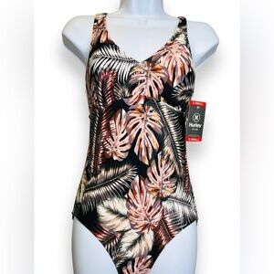 Hurley | One Piece Palm Tree Print Cross Back Swimsuit Sz XS