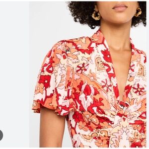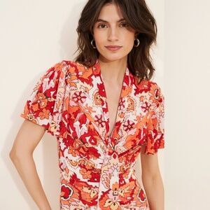 Cinq a Sept Peeta Ruched Damask Midi Dress pink poppy multi size 6