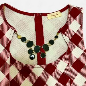Sarah La Petite Modern tradwife bodycon gingham plaid sleeveless dress