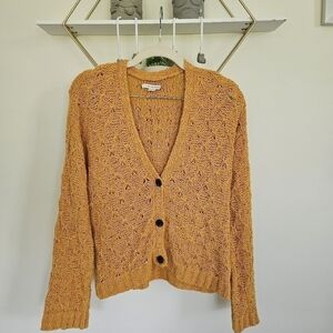 American Eagle Open Knit Golden Yellow V Neck Button Front Cardigan Sweater