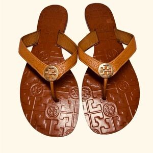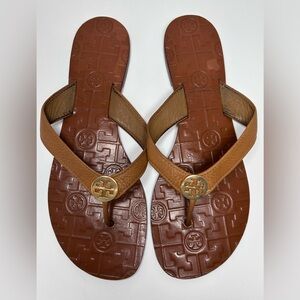 Tory Burch Thora Thong Sandals, Signature Logo Medallion, 100% Leather Size 9