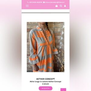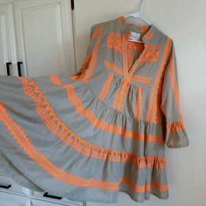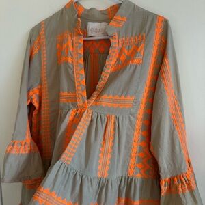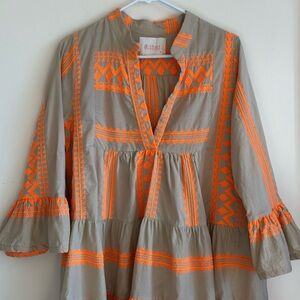 Aether Concept Embroidered Cotton Tunic Dress Orange Beige | M