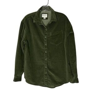 American Eagle Outfitters Corduroy Button Down Shirt Green Casual Women XS