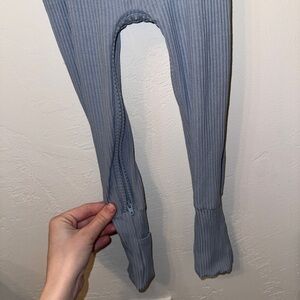 Soft and comfortable footie. Ideal for sleep and play. Easy to wear. Convertible feet! Sold out little Sleepies ribbed style. Crescent zippy for easy diaper changes!