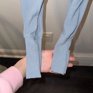 Blue Ribbed Crescent Zippy Bamboo Little Sleepies Pajama One Piece 18-24