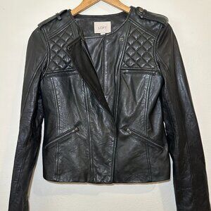 Vintage Ann Taylor Loft Black Quilted Moto Leather Jacket