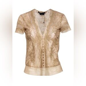 New BCBG Max Azria - Gold Metallic Sheer Lace Short Sleeve Blouse