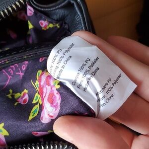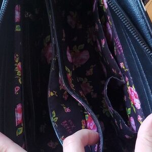 Betsey Johnson Polka dot crossbody bag. Floral scarf. Adjustable strap; can be removed to make a handbag. Gold details. Small scratch and stain at the front as seen on pictures. Back of the purse has stain because of friction of clothes when wearing the bag as a crossbody bag (see pictures). See pictures for measurements. Floral print inside the purse, no stain or hole inside.