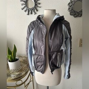 Free people intimately Gray and Light Blue Hooded Jacket Sz S lightweight warm