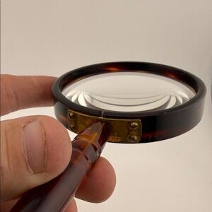 Elegant magnifying glass with a brown handle. Perfect for reading or display.