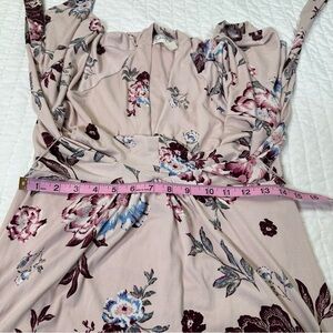 Chic Jessica Simpson maxi dress. Features floral patterns in pink and white. Perfect for any occasion.