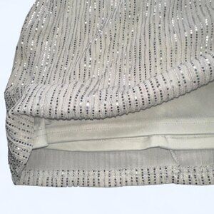 Windsor white sequin halter mini dress. Bodycon fit, sparkly striped sequins, lined, hidden back zip. Perfect for birthday, bachelorette, bridal, or night out. Size M.