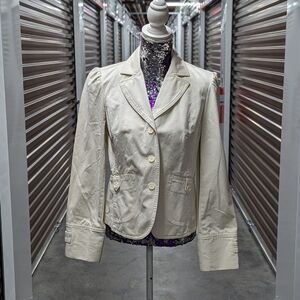 Ann Taylor LOFT Size 10 Cream 100% Cotton Button Front Jacket Preppy Teacher