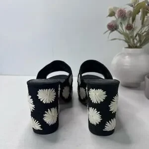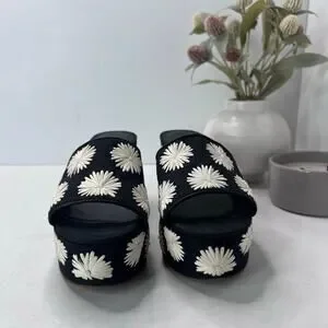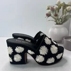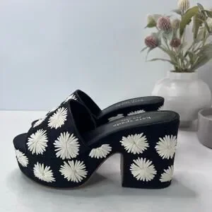 Kate Spade Ibiza Pom Pom Floral Platform Sandal Black/White Women's 7B