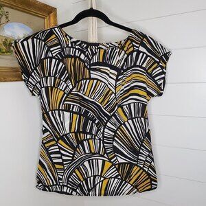 Trina Turk Black Yellow White Pattern Short Sleeve Top XS