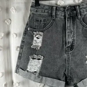 SHEIN Women’s Charcoal Distressed Jean Shorts Size XS(2)